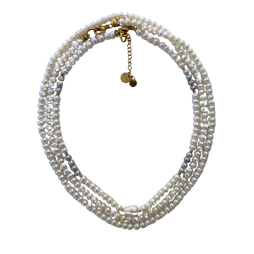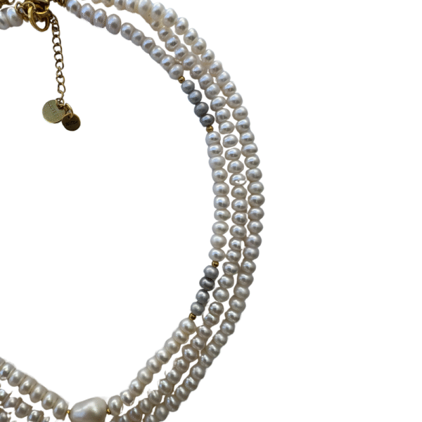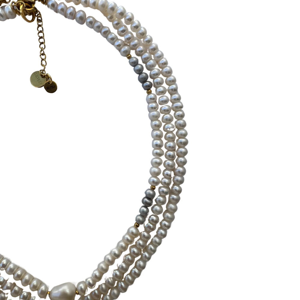 Set of 2 white Rondelle fresh water pearl touched with gray rondelle & tear drop shape charm and stainless steel adjustable clasp .