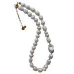 Fresh Water Rice pearls accented with a silver baroque pearl and adjustable stainless steel clasp.